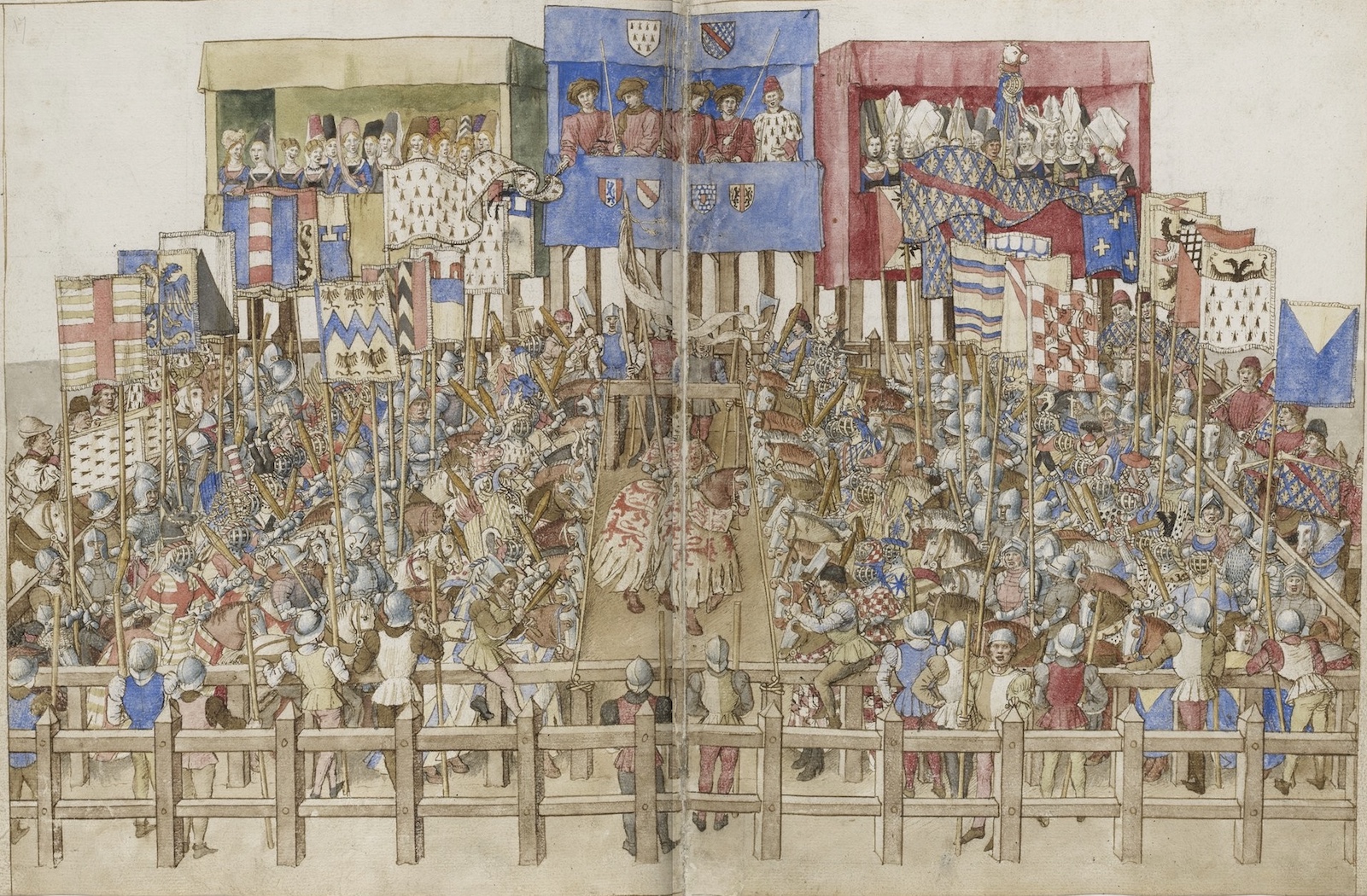 “Los mantenedores y los demás que a ver las justas viniesen, con todos los oficiales necesarios, como reyes de armas, farautes, trompetas y otros menistriles, escribanos, armeros, herreros, cirujanos, médicos, carpinteros y lanceros que enastasen las lanzas, sastres y bordadores y otros de otras facciones”.