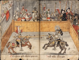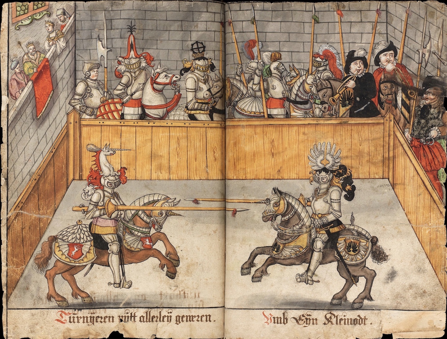 En la iconografía medieval y moderna de estos torneos y justas aparecen siempre las trompetas como el instrumento imprescindible en el anuncio de sus contendientes, portando sus emblemas, y en las distintas fases de su desarrollo (ver recursos).