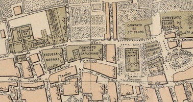 El convento murciano de capuchinas dedicado a la Exaltación del Santísimo Sacramento fue fundado en 1645 por el doctor Alejo de Bojados y Llul, Inquisidor General del Reino de Murcia. La fundación se llevó a cabo con cinco religiosas del convento de capuchinas de Zaragoza, a cuyo frente se encontraba María Ángela Astorch que había sido abadesa en ese cenobio zaragozano. Se establecieron en unas casas adquiridas por Alejo de Bojados en la calle Nueva, junto al colegio de la Compañía de Jesús. Las inundaciones de 1651 y 1653 afectaron gravemente a las dependencias del convento que tuvo que ser reedificado. La nueva iglesia comenzó su construcción el 21 de mayo de 1664, con la colocación de la primera piedra, y fue concluida en 1688. Los festejos de inauguración de la nueva iglesia se prolongaron durante la octava que transcurrió desde el día 20 al 27 de febrero de ese año.