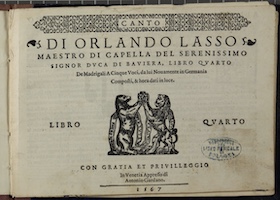 * Libri quatro di Orlando [di Lasso], a cinque, libre tre.
