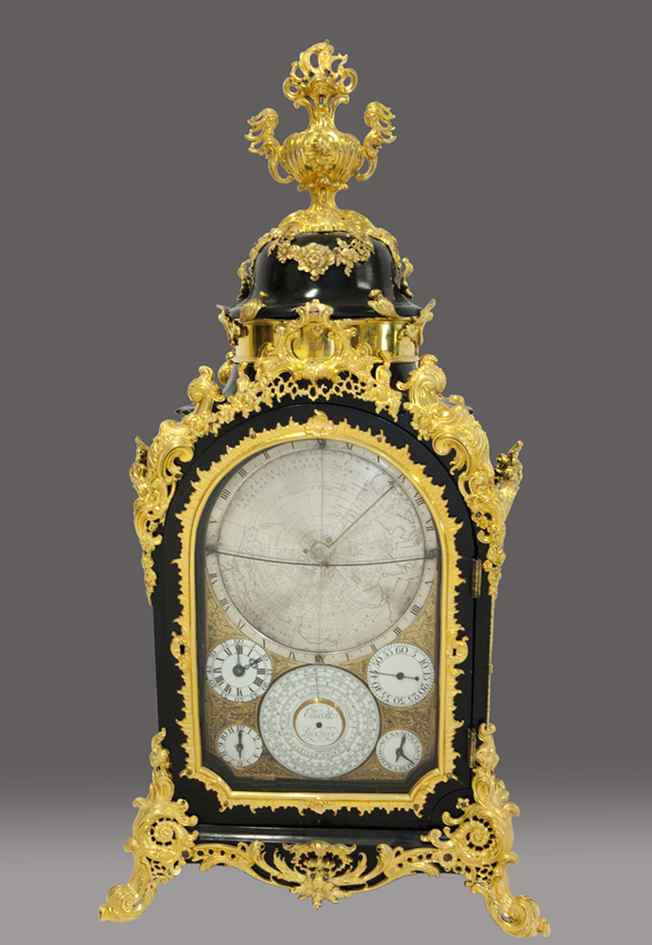 * N.º 8 [8/7/1790], p. 32: “D. Diego Garrigues, relojero de la M. I. Ciudad, que vive junto al Migalete, casa n.º 1, tiene para vender relojes nuevos ingleses de faldriquera y de similor [aleación que tiene el color y el brillo del oro que se hace fundiendo zinc con cobre], de pilar y de sobremesa. Uno de estos con caja de ébano y adornos de latón dorado, el cual, a más de señalar horas y minutos y días del mes toca diez sonatas de flauta. Tiene dos registros y admite ocho días de cuerda”. Este último reloj recuerda en su descripción a uno de los relojes de la extraordinaria colección del Palacio Real de Madrid. Se trata de un reloj de sobremesa bracket del relojero inglés John Ellicott (hacia 1757), cuya maquinaria se encuentra inserta en una caja de ébano con aplicaciones de bronces cincelados y dorados. Tiene un carrillón con doce campanas que pueden tocar doce sonatas diferentes (ver recurso).