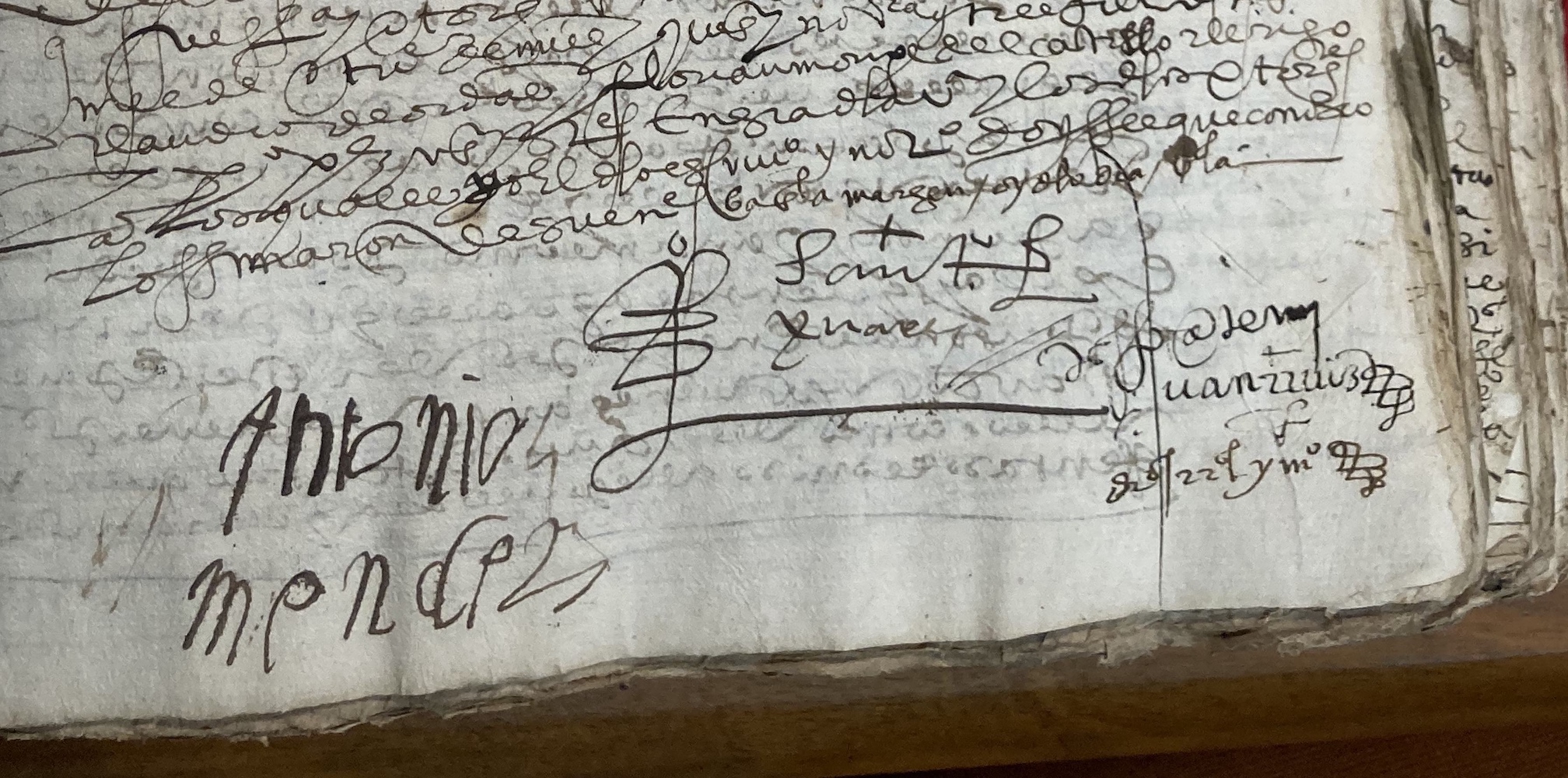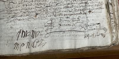 El 5 de octubre de 1593, ante el escribano público Juan Ruiz, se establecía un concierto entre Pedro de Santiago [en la rúbrica Pedro Santiago Juárez], “trompeta de esta villa y vecino de ella”, representando a los trompetas y atabaleros de la ciudad, y Antonio Méndez, “vecino de esta dicha villa”, por el que era “recibido en el dicho oficio de trompeta para las fiestas que de aquí adelante se hicieren en esta dicha villa por la Universidad”. Entraba para reemplazar al trompeta difunto Pedro de Robles en el desempeño de sus obligaciones, el cual había liderado al grupo hasta su fallecimiento: