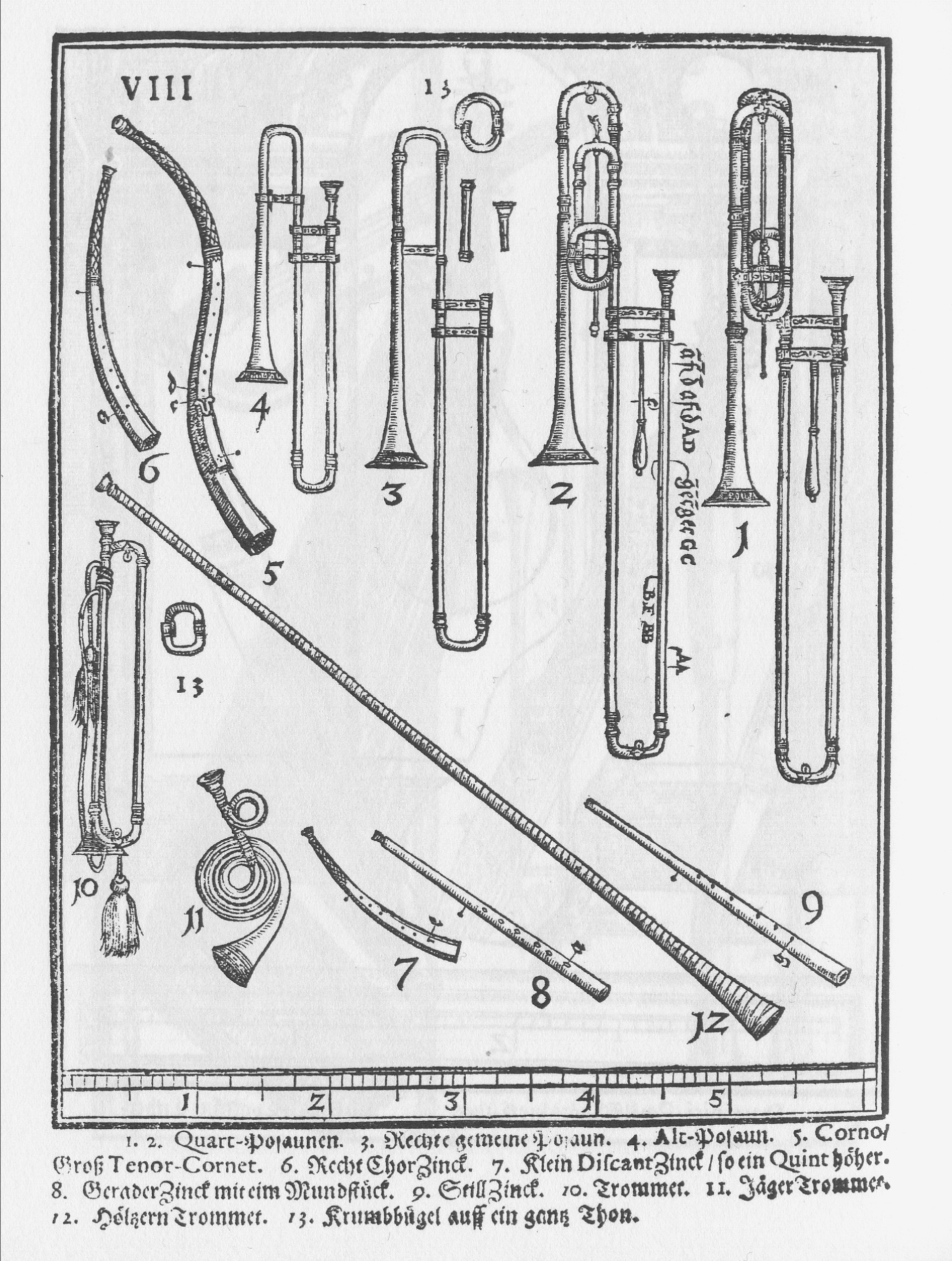 La identificación de las “cornetillas” presenta más dudas. Pedro Crespo era un ministril profesional, por lo que podríamos suponer que este término pudiera referirse al instrumento curvo, de pequeño tamaño, que encontramos también en la citada lámina VIII (n.º 7) de Pretorius. La denominación “cornetilla”, en el siglo XVI, se refiere también a un instrumento de metal de carácter más rústico y empleado para señales de aviso. Así se describe en un libramiento dado por el canónigo “obrero” de la Fábrica de la catedral de Santo Domingo de la Calzada fechado el 20 de septiembre de 1552: “Di a Soto, capellán, cinco reales y medio para comprar ciertas hojas de latón morisco para las cornetillas del coro y por la hechuras dellas”. Desde finales del siglo XVII, encontramos también este término como una variante del registro de corneta en algunos órganos.