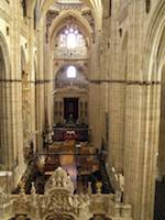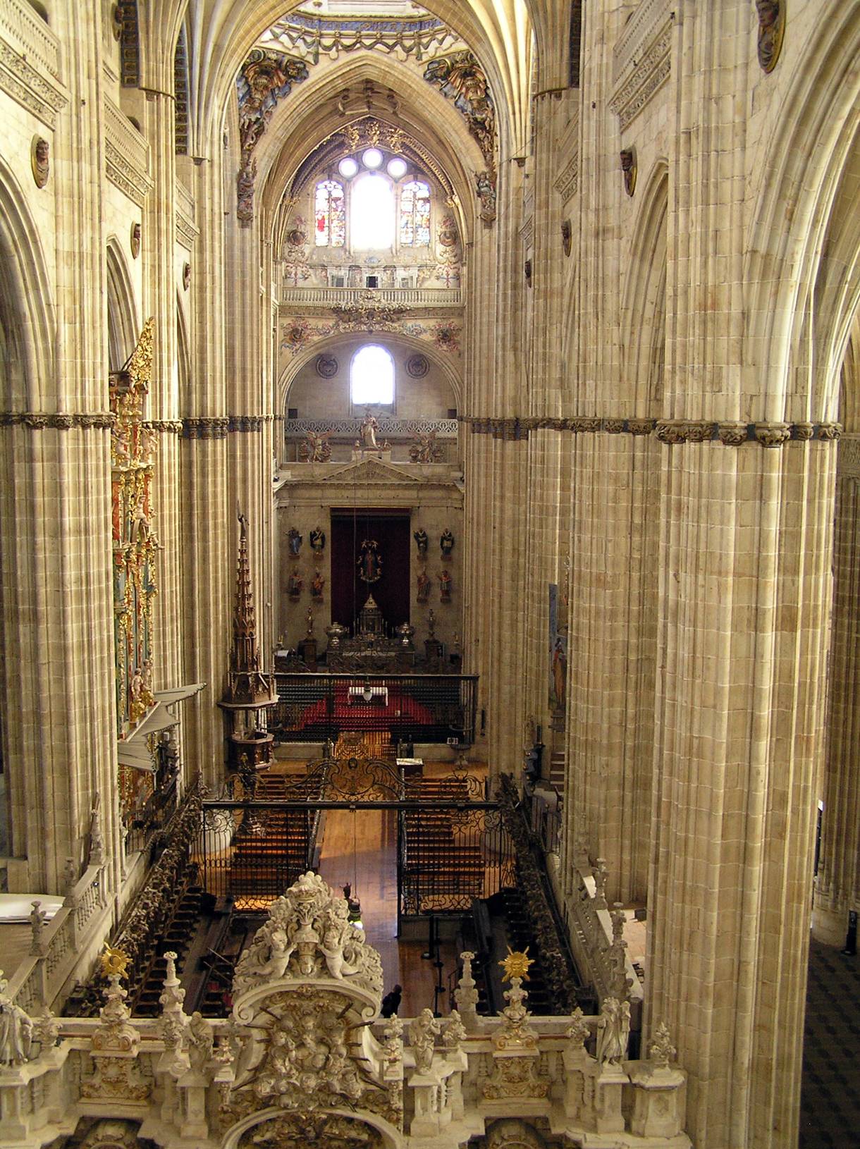 "a las dos y media de la tarde [había salido de Santa Úrsula a las once de la mañana], recibióla el cabildo a la puerta principal, que sale a la calle nueva. Anduvieron en la torre a un tiempo todas las campanas, que son tantas y tan sonoras, que alegraban la gente con la novedad; y daban nuevas de la fiesta a muchos lugares de la comarca. Estaba la Iglesia llena de gente, gran prueba de su piedad y devoción; porque siendo la hora tan incómoda, y habiéndose de pasar hasta la noche en el mesmo peso, se supo olvidar de todo, entretenida como Moysén con la contemplación del misterio y música de los oficios. [...] Començose luego una misa que había compuesto para aquel día el maestro Sebastián de Vivanco cathedrático de música de la Universidad y maestro de capilla de la Iglesia, y él y los cantores la oficiaron con tan gran destreza que parecía de ángeles el coro."