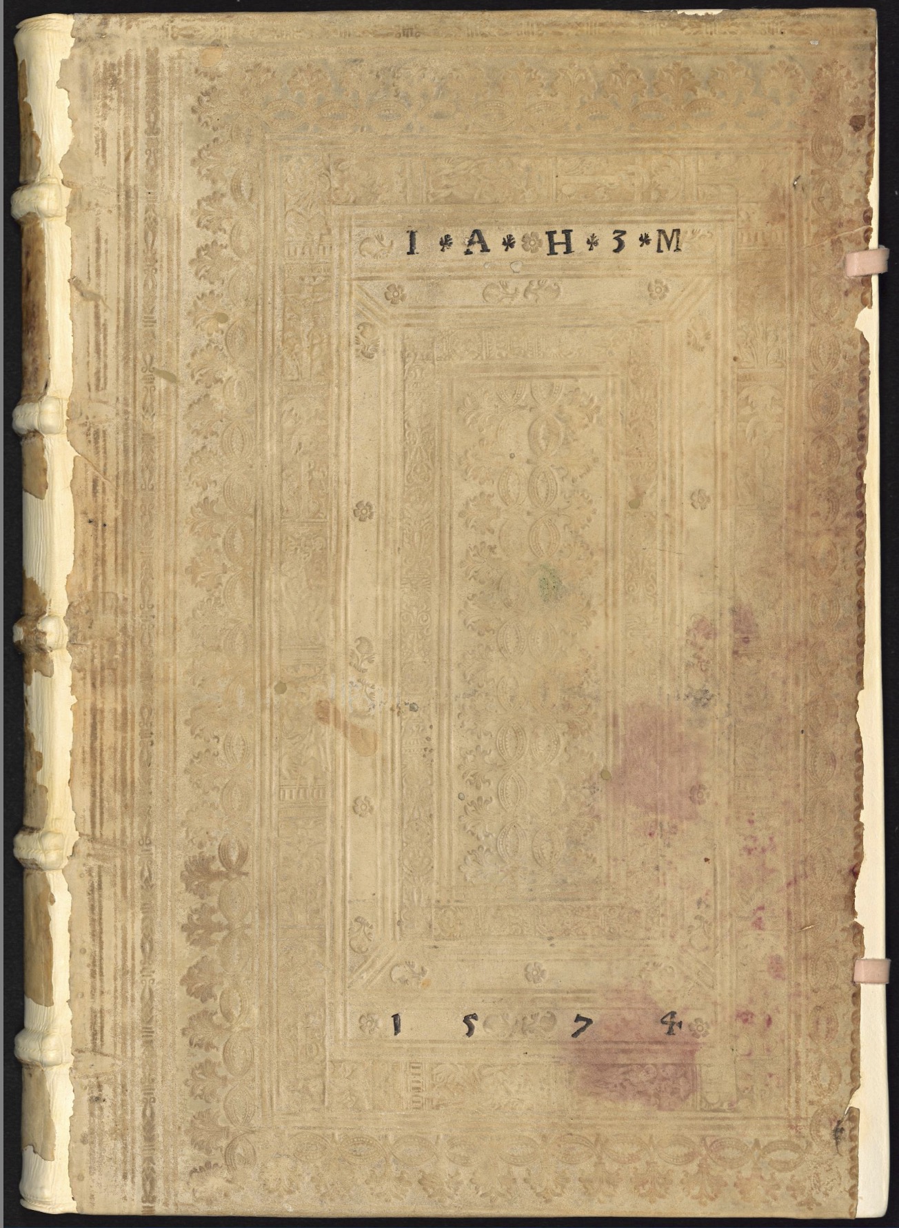 su parte delantera, se grabó I.A.H.3.M y la fecha 1574, la cual debe