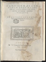 obras impresas de Francisco Guerrero , Francisco Guerrero. Canticum Beatae Mariae quod magnificat nuncupatur (1563) [G 4867] , magnificat , cartografiando Francisco Guerrero , Francisco Guerrero (compositor, maestro de capilla) , Johann Albrechts I (duque [herzog] de Mecklenburg)