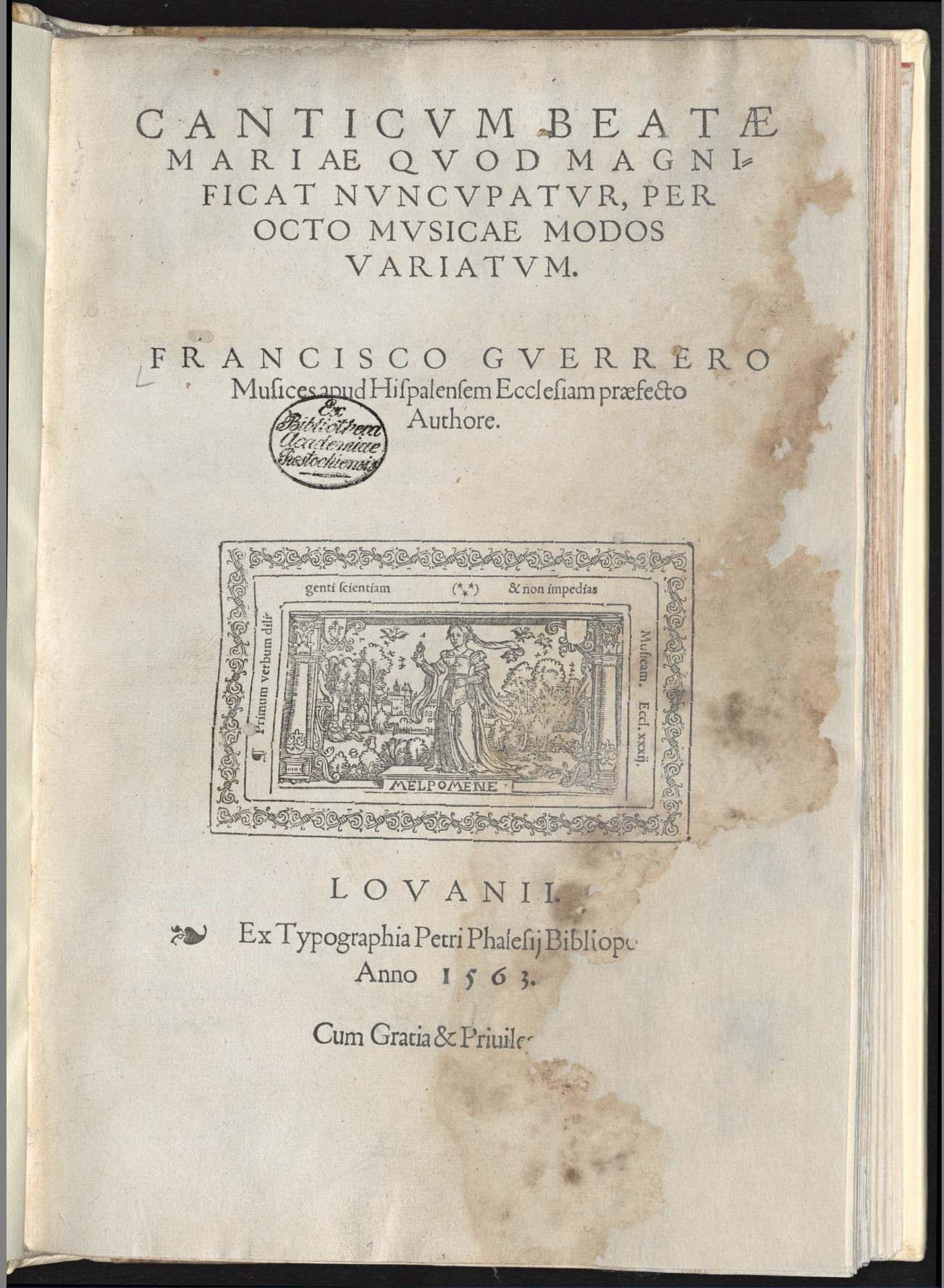 En la Biblioteca de la Universidad de Rostock, se conserva un ejemplar del impreso de Francisco Guerrero Canticum Beatae Mariae quod magnificat nuncupator (Lovaina: Pierre Phalèse, 1563) [G 4867] con la signatura [D-ROu] Mus.Saec. XVI-23.