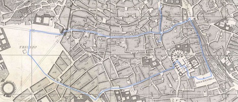 El cortejo realizó el siguiente itinerario: saliendo del convento del Ángel Custodio, subió a calle Elvira para dirigirse a Plaza Nueva y de allí, por la calle Zacatín, bajó hasta la Plaza de Bibarrambla. Entró en la catedral por la puerta frontal, para salir por la puerta del Perdón y continuar por la calle San Jerónimo; subió por la calle San Juan de Dios hasta el Triunfo de la Inmaculada y, tras pasar por delante del convento de la Merced, atravesó el arco de Elvira para seguir esta calle ascendiendo finalmente por la calle de la Calderería Nueva hasta el convento de San Gregorio Bético.