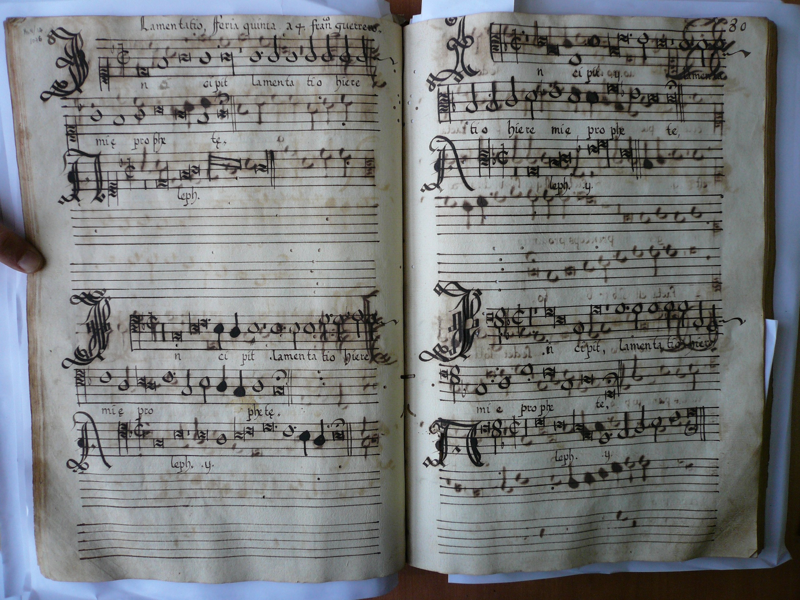 - Fols. 79v-88r. “Lamentatio. Feria quinta a 4”. Francisco Guerrero.