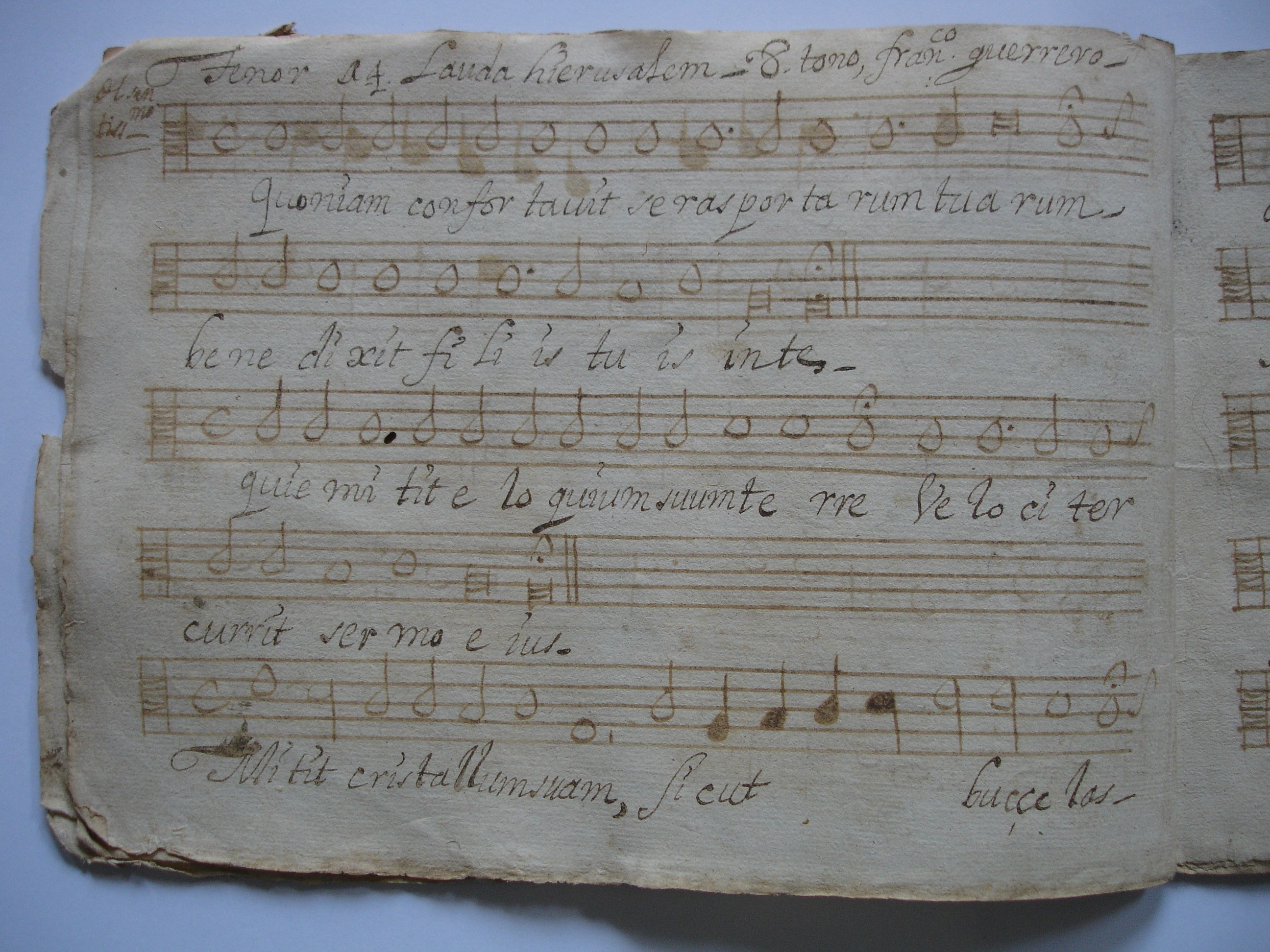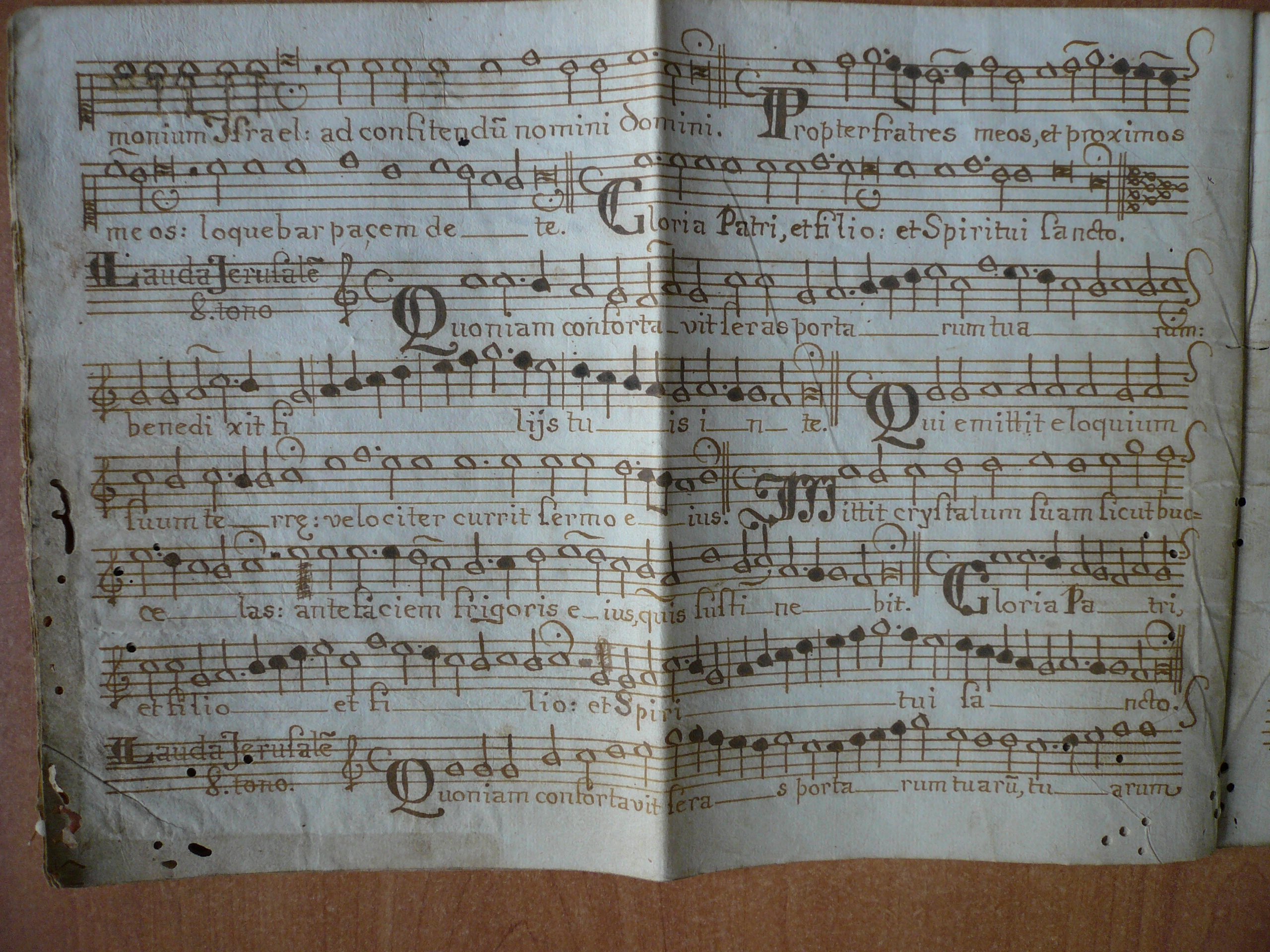 Encontramos copias incompletas de estos dos salmos también en los manuscritos musicales de Huehuetenango (Guatemala). Véase: https://www.historicalsoundscapes.com/evento/1539/santa-eulalia y