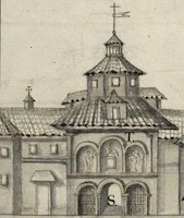 La plataforma de Ambrosio de Vico nos permite apreciar la trayectoria de la muralla que desde el margen izquierdo del río Darro, a la altura del puente del Álamo o de los Curtidores, bordeaba la mancebía para llegar hasta el castillo de Bibataubín, indicando, con el n.º 53, la puerta homónima, conocida también como de los Penitentes. En 1619, sobre el arco de la puerta, se construyó la capilla de Nuestra Señora de los Remedios, con la finalidad de que los soldados acuartelados en el castillo pudieran oír misa. En este espacio se veneraba también una imagen con la advocación de Jesús del Consuelo, la cual podía contemplarse por la hornacina que daba a la carrera de la Virgen. Es muy probable, como sugiere Antonio Padial Bailón, que la capilla tuviera una estructura similar a las que encontramos en las puertas de la vecina Santa Fe.