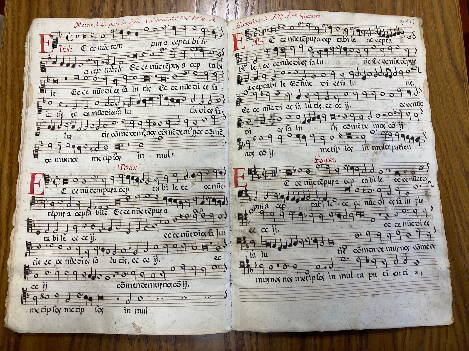 - Fols. 20v-22r [foliación moderna] / 132v-134r [foliación antigua]. Ecce nunc tempus acceptabile. “Motete a 4 para la feria 4 Cinerum y demás ferias de Cuaresma, de don Francisco Guerrero”.