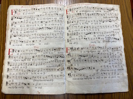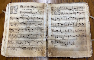 El cuarto es, sin duda, un libro manuscrito copiado en pergamino con salmos del compositor.