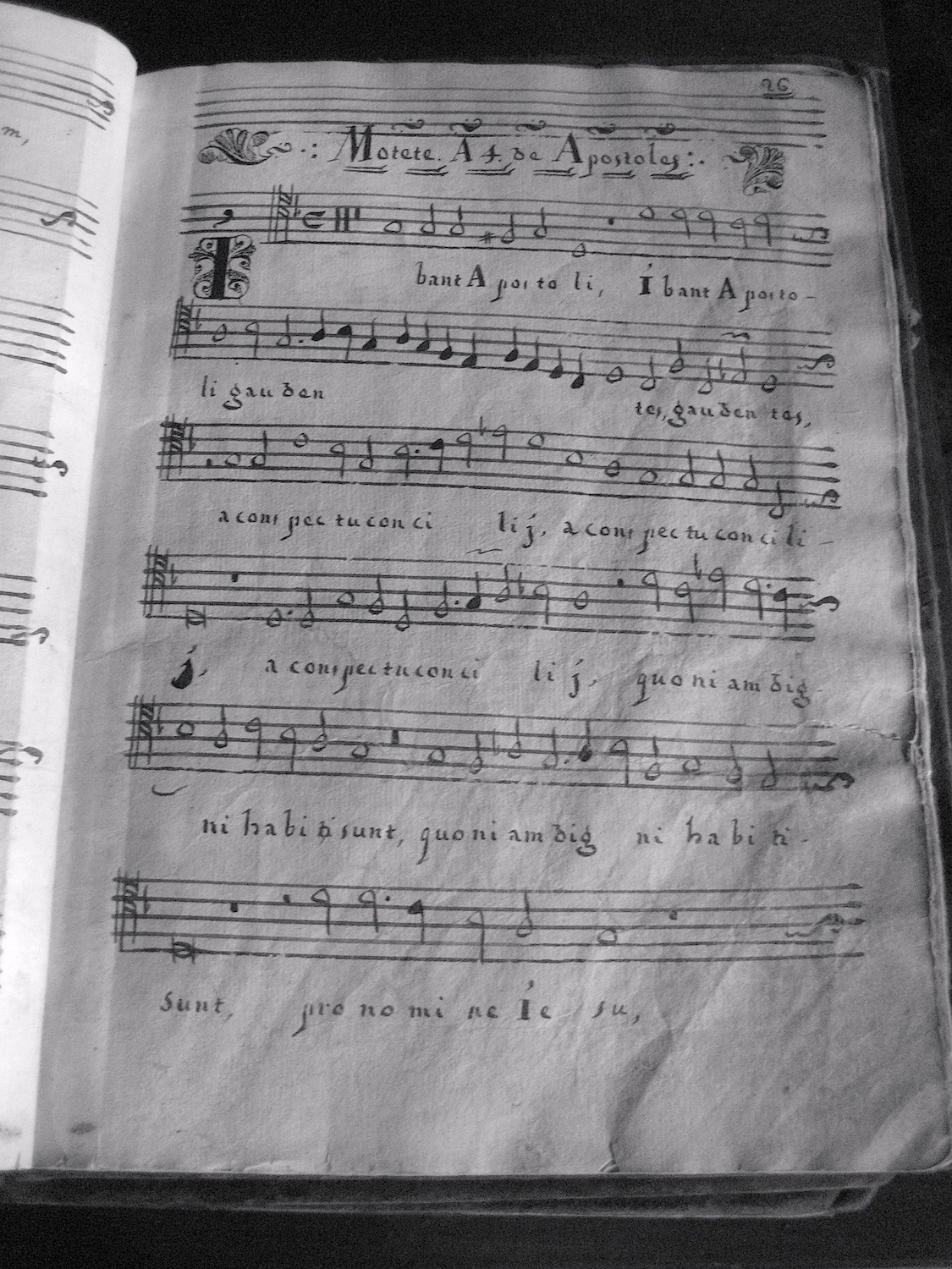 - Pp. 28-29. Ibant apostoli gaudentes. “Motete a 4 de Apóstoles”. [Francisco Guerrero] [1589].