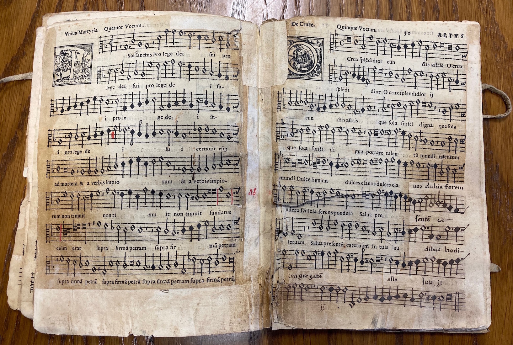 Se conservan cuatro de los cinco libretes: Superius, Tenor, Bassus y 5ª y 6ª pars. Al igual que la edición de 1570, han sido reparados en distintas ocasiones para mantenerlos en uso con distintas páginas manuscritas (véase recurso).