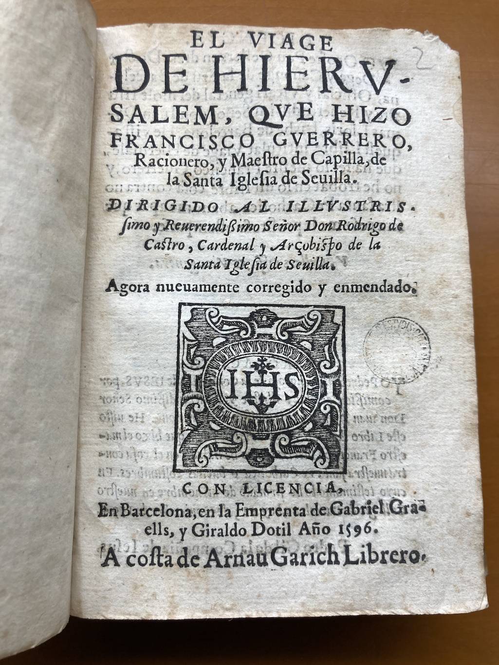 Segunda edición barcelonesa de El viage de Hierusalem de Francisco Guerrero (1596)