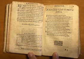 Hay otro interesante detalle en esta edición. En la portada se anota “agora nuevamente corregido y enmendado”. Queda pendiente una minuciosa y completa revisión y comparación con la edición de Barcelona de 1594 y con la príncipe de Sevilla de 1592 para averiguar a qué correcciones y enmiendas se refiere, ya que en las páginas cotejadas no hay ninguna diferencia significativa más allá de las habituales derivadas de las variantes ortográficas y de abreviaturas.