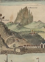 In response to the increasingly urgent need for rain, a procession was held on 16 April by the cathedral clergy to Santa Madrona’s Chapel on the hill of Montjuïc. Again, this procession involved the singing of litanies. Along the route, the procession stopped in front of a little chapel (capelleta) at the Ferrisa Gate (presumably part of the College of Nuestra Señora de Belén), at the door of the Carmelite Church, in front of the churches of the Minims (Convent of Jesus María), Capuchins (Monastery of Santa Margarida la Reial) and Hieronymites (Monastery of Sant Maties), and in front of the Church of Sant Antoni Abat. The Manual describes how, at each place, the four cabiscols turned to face the building, saying together 'in a louder voice' (‘ab veu mes alta’) the name of the saint to whom the church was dedicated, and how the rest of the clergy responded with the words "ora pro nobis" ("pray for us"). The cabiscols then repeated the name of the saint for a second time, and the clergy answered with "intercede pro nobis" ("intercede for us"). On reaching the Gate of Sant Antoni and leaving the city, the procession continued without any singing until it came to the Cross of Santa Madrona. There the singing of litanies was resumed, beginning with Omnes sancti et sanctae Dei, and finishing once the clergy were kneeling inside the chapel ('y se acabaren ditas lletanias estant lo Clero agenollat en la Iglesia de Santa Madrona'). A polyphonic office was sung and, following this, the procession departed again for the cathedral, carrying with it the relics of Santa Madrona and singing Regina caeli and Ave maris stella. As before, between the Cross of Santa Madrona and the Gate of Sant Antoni, the singing stopped, resuming only upon re-entering the city, where the Ave maris stella was intoned.