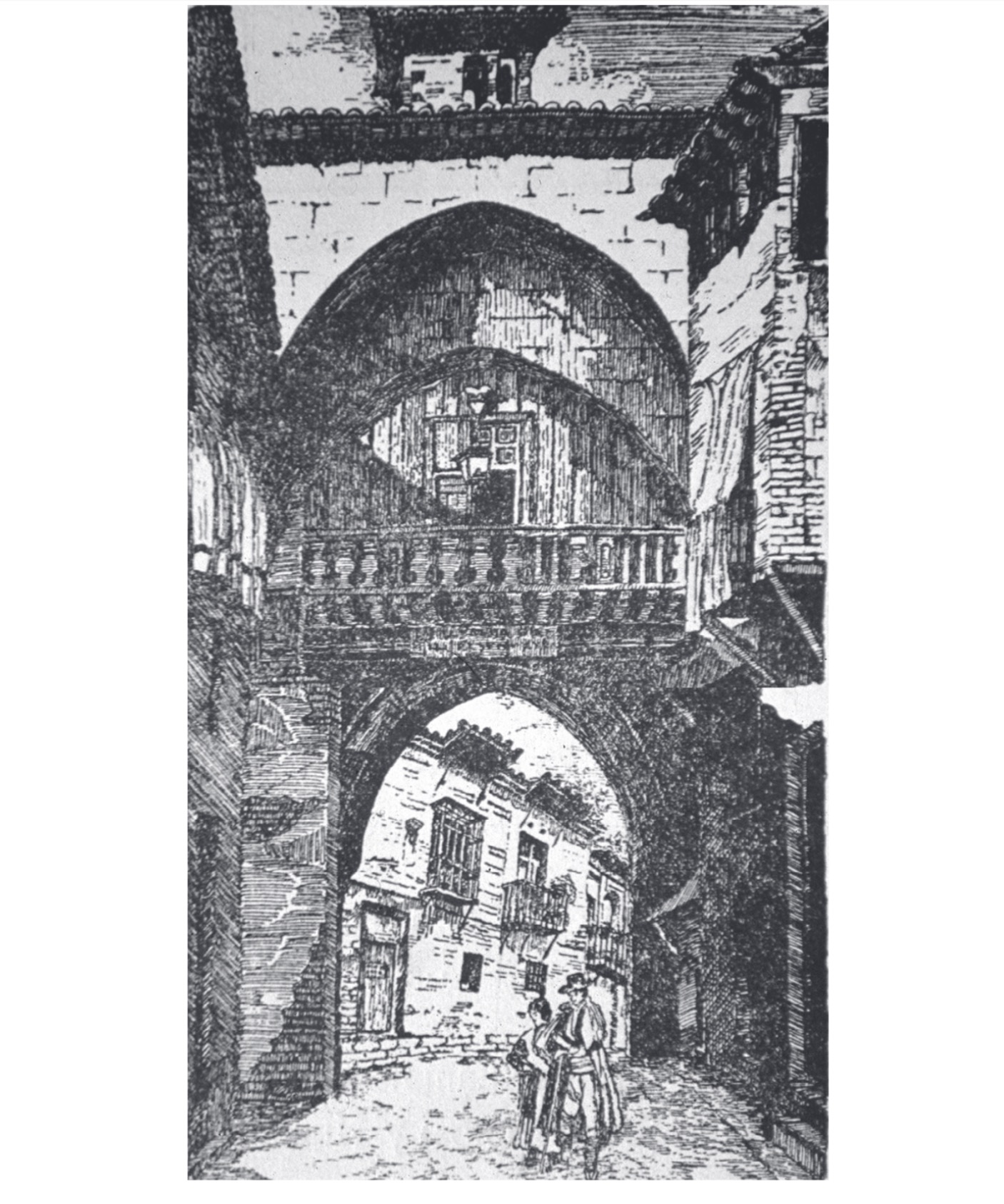 “En la sobredicha parroquia de Santa Escolástica y sobre la misma Puerta Bibmitre, que hoy se llama del Pescado, hay otra tribuna, donde se celebra misa los días festivos para beneficio de todo aquel barrio, que tiene algo distante los templos y los alejan más los días incómodos. Está también dedicada a otra imagen de María Santísima que tiene el mismo título que la de la antecedente tribuna [se refiere a la que había ubicada en la antigua puerta de los Molinos, con la advocación de Nuestra Señora de Belén]. Dícese que esta pintura es copia de la que está en el cuerpo de guardia de la fortaleza real de la Alhambra, que tiene esta memoria… No tiene libro por donde nos conste su fundación, pero si el tiempo no la hubiera injuriado, apareciera una inscripción, escrita en yeso y en una faja que está en la parte inferior y fachada de la tribuna. Solo se puede leer en ella que se erigió el año 1700. Cuidan de esta capilla, que es preciosa y está muy aseada, los vecinos que los más son torcedores de la seda, proveyéndola estos mensualmente de la cera, vino y hostias. De estos mismos vecinos se nombran todos los años dos mayordomos a quienes pertenece por mitad cuidar de que siempre esté encendida la lámpara y celebrar a esta imagen con mayor número de misa el día de la Natividad de Nuestra Señora”.