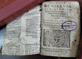 Ediciones de El viage de Hierusalem (1605 y 1609) de Francisco Guerrero impresas en los talleres de Juan Gracián en Alcalá de Henares.
