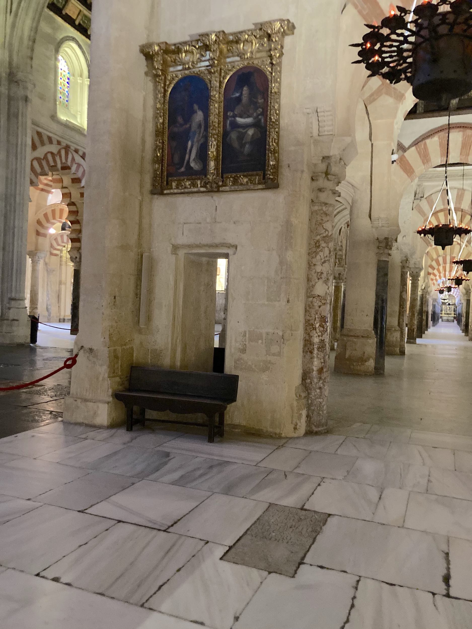 “[Altar] que es hoy en la nave de Villaviciosa y en lo antiguo al lado del choro y en el año de 1589 estaba junto a la puerta por donde se subía a la tribuna del órgano y lo mesmo en el año de 1593 y 1599 y en el año de 1607 se dice estar a las espaldas del choro y que su advocación era de señor San Pedro y San Pablo. Parece que lo fundaron los caballeros del apellido de Roxas respecto de que Juan de Roxas, 24 de Córdoba, hijo de Alonso Yáñez de Córdoba, difunto, dotó y fundó en dicha capilla y altar dos capellanías por el testamento que otorgó en Córdoba ante Pedro Fernández de Estrada, escribano público, a 20 de agosto de 1519, y en dicho testamento se manda enterrar en la capilla y enterramiento que dicen de las Cabezas, al lado del choro, donde están enterrados mis padres y abuelos. Dichas dos capellanías las dotó con 8.000 maravedís de renta cada una, situados en su dehesa de la Guadamelena, y su fábrica en 3.000 maravedís. Dejó por juez collador al cabildo y por patrono a Juan Pérez de Castillejo, su sobrino, nieto de doña Inés de Rojas, su hermana [casada con Luis Pérez de Castillejo, el cual testó el 12 de noviembre de 1507], y a sus hijos y descendientes en forma regular”.