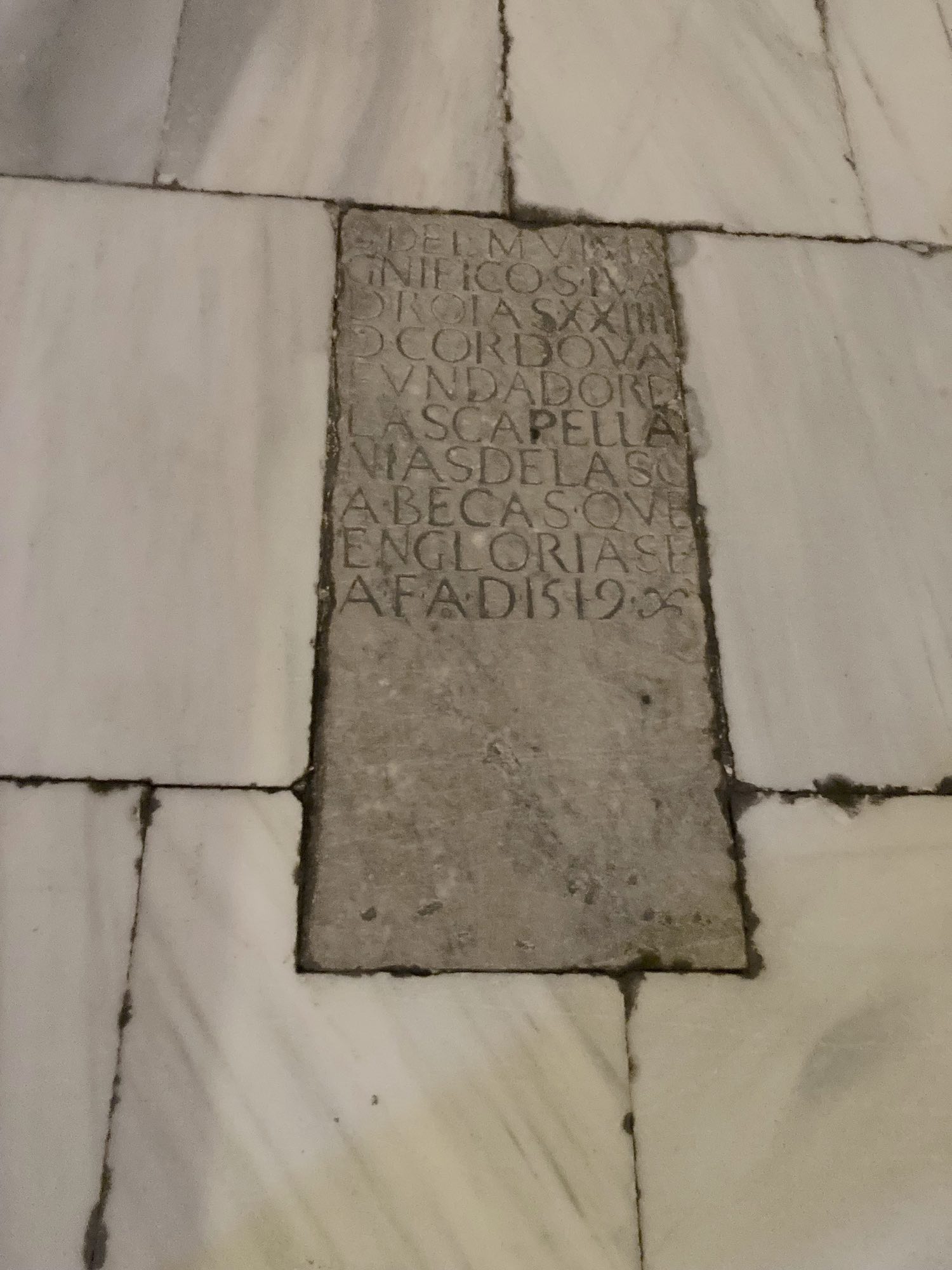 En su localización original, o muy próxima a ella, se ha conservado la lápida funeraria de Juan de Rojas (ver recurso), con la inscripción que da cuenta de la dotación de las dos capellanías: “Sepvltura del mvi magnifico señor Ivan de Roias, XXIIII de Cordova, fvndador de las capellanias de las Cabezas, que en gloria sea, fallecio anno de 1519”.