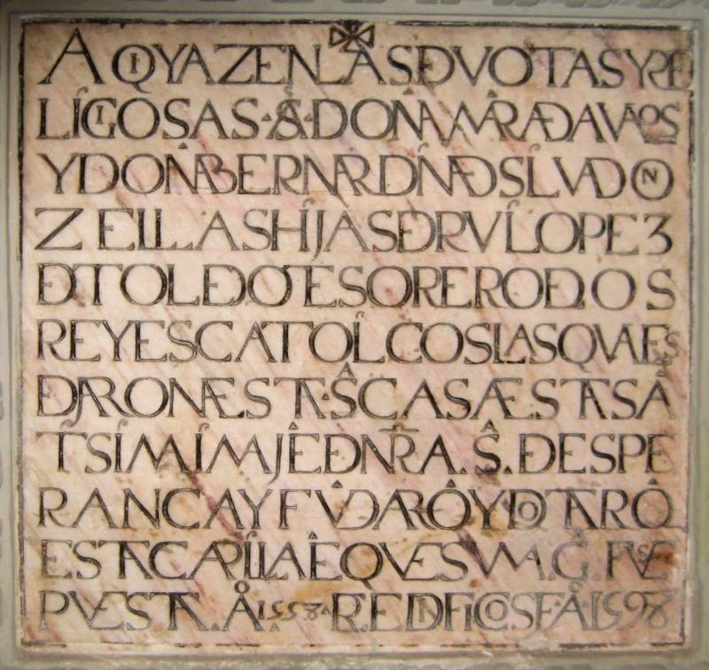 Los padres de Luis de Guzmán fueron enterrados en la capilla mayor del monasterio de Santa Cruz la Real. Sus hermanas, María de Ávalos y Bernardina de Silva, en la capilla que ellas dotaron con la advocación de Nuestra Señora de la Esperanza en el mismo cenobio dominico, a la que habían donado la imagen que la adornaba, como consta de la inscripción de su lápida sepulcral. Ya en el siglo XVIII, fray Antonio de la Chica Benavides, en la Gazetilla Curiosa (abril 1765), nos trasmite la leyenda de la aparición de esa imagen de alabastro. En tiempos de los Reyes Católicos, se hallaba Ruy López de Guzmán con Diego de Mendoza en Sierra Nevada y debido a lo abrupto del terreno y las malas condiciones meteorológicas se perdieron. Imploraron a “María Santísima... de toda buena esperanza” y vieron descender una luz que les permitió vislumbrar una gruta donde encontraron la imagen de la Virgen con el Niño. López de Guzmán la cogió y ayudados de la claridad lograron orientarse y llegar a la ciudad. En esta capilla y en torno a esta imagen se fundó la Hermandad de la Virgen de la Esperanza del gremio de torcedores de la seda.