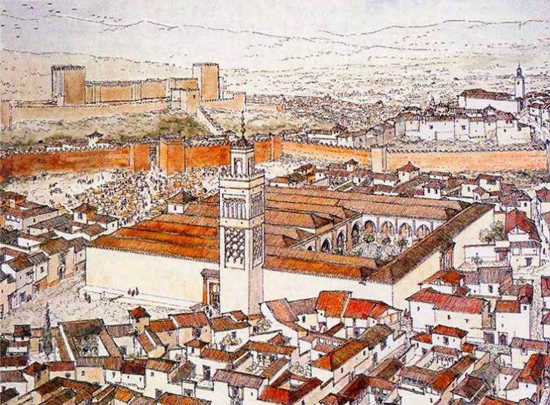 La llamada a la oración del almuédano (almuecín o muecín) se repite cinco veces al día y sería uno de los elementos esenciales del paisaje sonoro de la ciudad musulmana. La mezquita mayor del Albaicín fue construida por los moros de Baeza cuado estos se asentaron en la ciudad. Según el viajero Hieronymus Münzer, que la visitó en 1494, era mucho más bella que la mayor de la ciudad. Münzer visitó esta última en 1494 y fue testigo de su actividad religiosa: "Aquel mismo día, que como viernes era el de la fiesta de los moros, fuimos a la mezquita mayor. Varios almuédanos pregonaban la oración desde la torre y acudió tal concurso de fieles que, después de llenarse el templo, aún quedo fuera mucha gente; calculo que habría allí no menos de tres mil personas... Aquel día, por ser festivo, según he dicho, todas las demás mezquitas de Granada estuvieron tan llenas de gente como aquella, pues allí, como en las otras poblaciones musulmanas, vienen a ser lo que son entre nosotros los templos parroquiales". La mezquita mayor del Albaicín tenía una extensión de 25 por 30 metros, dividida en nueve naves, la central más ancha y las dos extremas más estrechas que el resto. Cada una era soportada por diez arcos de ladrillo apoyados en 86 columnas. El patio que la precedía estaba plantado de limoneros (más probablemente naranjos) y medía 18 por 13 metros. En sus costados se abrían dobles galerías, cada una con cinco arcos de herradura apuntados, uniendo a ambas, hacia poniente, otra nave con siete arcos, todas cubiertas con sencillas armaduras y tirantes de madera. Fue consagrada por el cardenal Cisneros en 16 de diciembre de 1499 y en ella se erigió, en 1501, la iglesia del Salvador que sería elevada a colegiata en 1533. Con algunas modificaciones el edificio estuvo en uso hasta mediados del siglo XVI cuando se inicia su renovación. Todavía se conserva su patio, además del aljibe y la galería occidental con arcos de herradura apuntados. También son testigo de su pasado los arranques de las columnas del resto de las galerías y los alfarjes que las cubren.