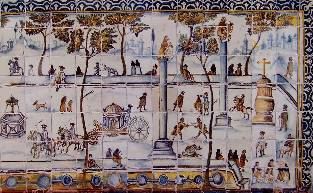 Vista panorámica de la Alameda de Hércules (6). Zócalo de azulejería del convento de la Encarnación de Osuna (Sevilla). Fotografía de Jesús Marín García y Antonio Entrena Aznarte