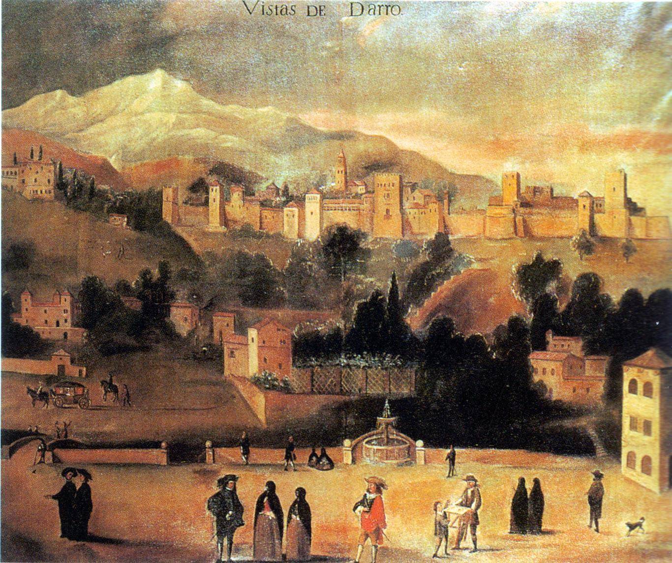 El cronista Henríquez de Jorquera nos describe el ambiente que había en este lugar en la primera mitad del siglo XVII y nos informa de diversos elementos de su característico paisaje sonoro: “No es menos la de la puerta de Guadix con su bizarra fuente sobre los márgenes de Dauro, con mirador de la Ciudad, donde las tardes de verano con música de ministriles se dan apacibles festejos á los caballeros que sobre feroces brutos la pasean y les hacen mal, y donde las granadinas damas salen á coger los frescos aires en bien adornados coches, donde la curiosidad, artificio y riqueza compiten... Remátale una puente de cantería que da paso para otro paseo margen del río de la otra banda a el oriente del primero, con mirador para música sobre la cerca del vistoso carmen de los Chapiteles... En el primero paseo que es su anchura mayor se han celebrado algunas fiestas de toros con cañas, haciendo plaza cuadrada con maderaje artificioso fundado por la parte del río y sobre su pretil ingeniosos andamios, cuyas fiestas tienen vista y se gozan desde el Alhambra y torre de Comares, desde el Generalife y su hermosa floresta, que cubriéndose de innumerable gente, contienda de varias seda entre vistosas arboledas, han dado materia para sacar al natural retratos curiosos pintores, y cuando Granada no tuviera recreación más que esta puerta de Guadix adquiriera con justo título el nombre de paraíso español”.