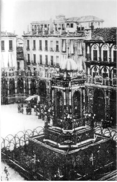 La casa de los Miradores estaba situada en la parte suroeste de la plaza de Bibarrambla. Era propiedad del cabildo municipal y el lugar privilegiado desde donde asistía a todos los espectáculos que se celebraban en ella. Fue trazada por el arquitecto Diego de Siloe y construida por su discípulo Juan Asteasu. Las obras se iniciaron en 1556, usándose desde ese mismo año, y se dieron por concluidas en 1583. El balcón fue dorado y pintado en 1585 y se amplió en 1625 por Francisco de Barea. El cuerpo bajo, con pilastras toscanas, tenía cinco arcos sin decoración. Encima había otros dos cuerpos, el primero con medias columnas y el segundo corintias, todo en piedra de sierra Elvira. El primer arco del extremo derecho era de tránsito público, se llamaba arco de las Cucharas (actual calle de las Cucharas) y tenía por origen una puerta mandada abrir en la muralla en 1519 para comunicar con la calle Mesones y Carnicerías. En el siglo XIX, se encontraba en este edificio el archivo de protocolos notariales, el cual fue drásticamente diezmado durante el grave incendió que destruyó completamente su interior el 31 de diciembre de 1879. Los restos de la casa de los Miradores fueron demolidos.