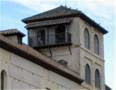 El campanario es del siglo XVI y se encuentra a la derecha de la portada de la iglesia. Consta de dos pisos separados entre sí por una ancha cornisa; los laterales de cada uno de ellos tienen dos arcos de medio punto incrustados en el muro. Varios cronistas de la ciudad dan cuenta de una campana que se encontró en los cimientos y que era “del tiempos de los Godos”. Fray Antonio de la Chica Benavides llega a afirmar que esta campana era de un templo de benedictinos, dedicado a Santa Catalina, y que se encontraba, todavía en la segunda mitad del siglo XVIII, en el campanario del convento, donde era la más pequeña. Actualmente el campanario del convento cuenta con cuatro campanas: