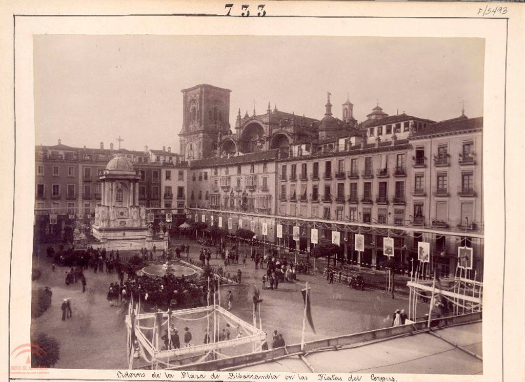 Según una Real Cédula de 23 de diciembre de 1642, en el siglo XVII los autos sacramentales se representaban: “en el ínterin que iba pasando [la procesión] estuviesen representando los dichos autos en la misma fiesta en la plaza de Bibarrambla por donde la procesión pasaba, en frente de los Miradores del ¿consejo? de esa dicha ciudad, que era el lugar de más anchura y decencia y más a propósito para la dicha representación y después el mismo día por la tarde iría a hacer en la dicha nuestra Audiencia y Chancillería al nuestro gobernador y oidores y demás ministros della”.