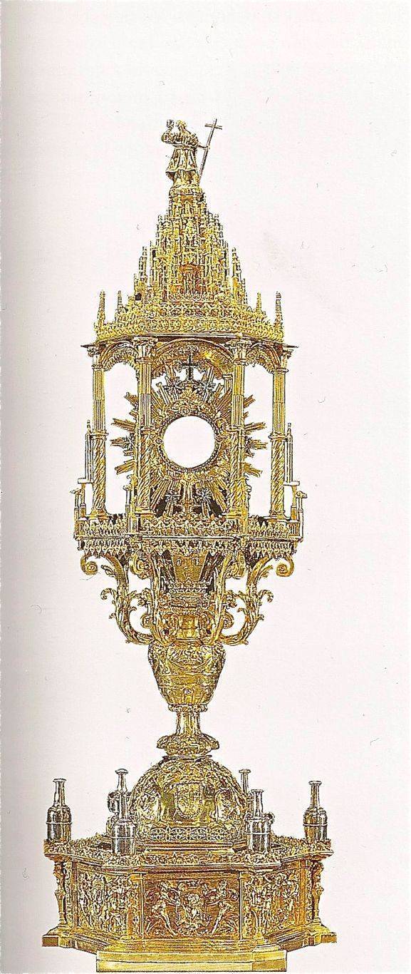 “Celebrándose un año la fiesta del Sanctísimo Sacramento, porque saliendo la procesión por la puerta de la iglesia que era baja, bajaron las andas los sacerdotes que las llevaban y concertándose mal, ladearon la custodia de suerte que yendo a caerse acudió con presteza el arzobispo que iba de pontifical y la detuvo y pareciéndole indecencia que la custodia en que iba el precio de los siglos fuese con semejante riesgo la tomó en las manos y con los brazos alzados, tan que el pie de ella llegaba casi a su cabeza, la trajo por toda la procesión. Quisieron los ministros ayudarle a llevarla y nunca lo consintió ni aun que le sustentasen los brazos. El conde de Tendilla y gran número de caballeros que acompañaban la procesión quedaron admirados por que la custodia era grande y la distancia de la procesión larga y mucha su edad. Con este espíritu, brío y valor ejercitaba su oficio”.