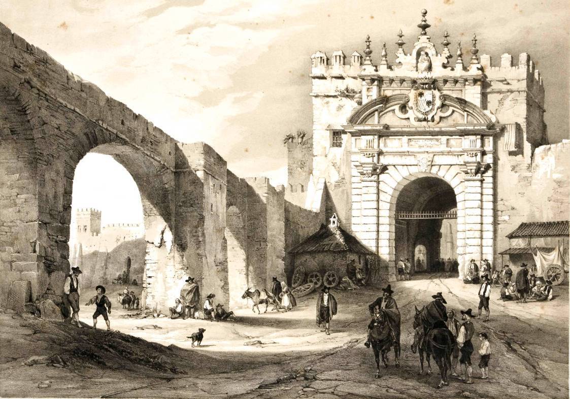 “Llegada pues el agua a la ciudad, y subiendo por cima de la puerta de Carmona, donde se haze su repartimiento, va desde allí mucha parte della por los muros que encaminan a la puerta de la Carne hasta el Alcázar real. Y repartiéndose también por iglesias, monasterios, plazas, calles y casas de caballeros, en sus fuentes de pie, se consume todo el caudoloso río dentro de Sevilla, sin salir agua ninguna fuera della... como es la gran fuente de la plaza de San Francisco, insigne por su altura y galano remate en una muy vistosa figura de bronce, sobre un globo de lo mismo que por todas parte brota de si tanta agua y con tanta furia que cayendo sobre una pila de jaspe y luego sobre otra de jaspe muy mayor de muchos caños se trasvierten con agradable ruido al limpio suelo rodeado de piedras de mármol labradas de altor conveniente. Y como es también la gran pila que sale de las gradas de Sevilla, que corre sin cesar en tiempo ninguno, llamada comunmente la pila del Hierro, por los hierros de lanzas y de pasadores que (según quieren decir) se hallarían cabando aquel circuito por una gran refiega que tuvieron allí moros y cristianos, siendo esta ciudad de moros. Y el gran estanque a la puerta de Carmona. Y otra pila de San Salvador. Y la que está a la puerta de la Carnecería mayor, sin otros remanientes”.