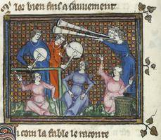 cinco juglares, entre ellos dos trompetas y un atabalero que actuaban en las