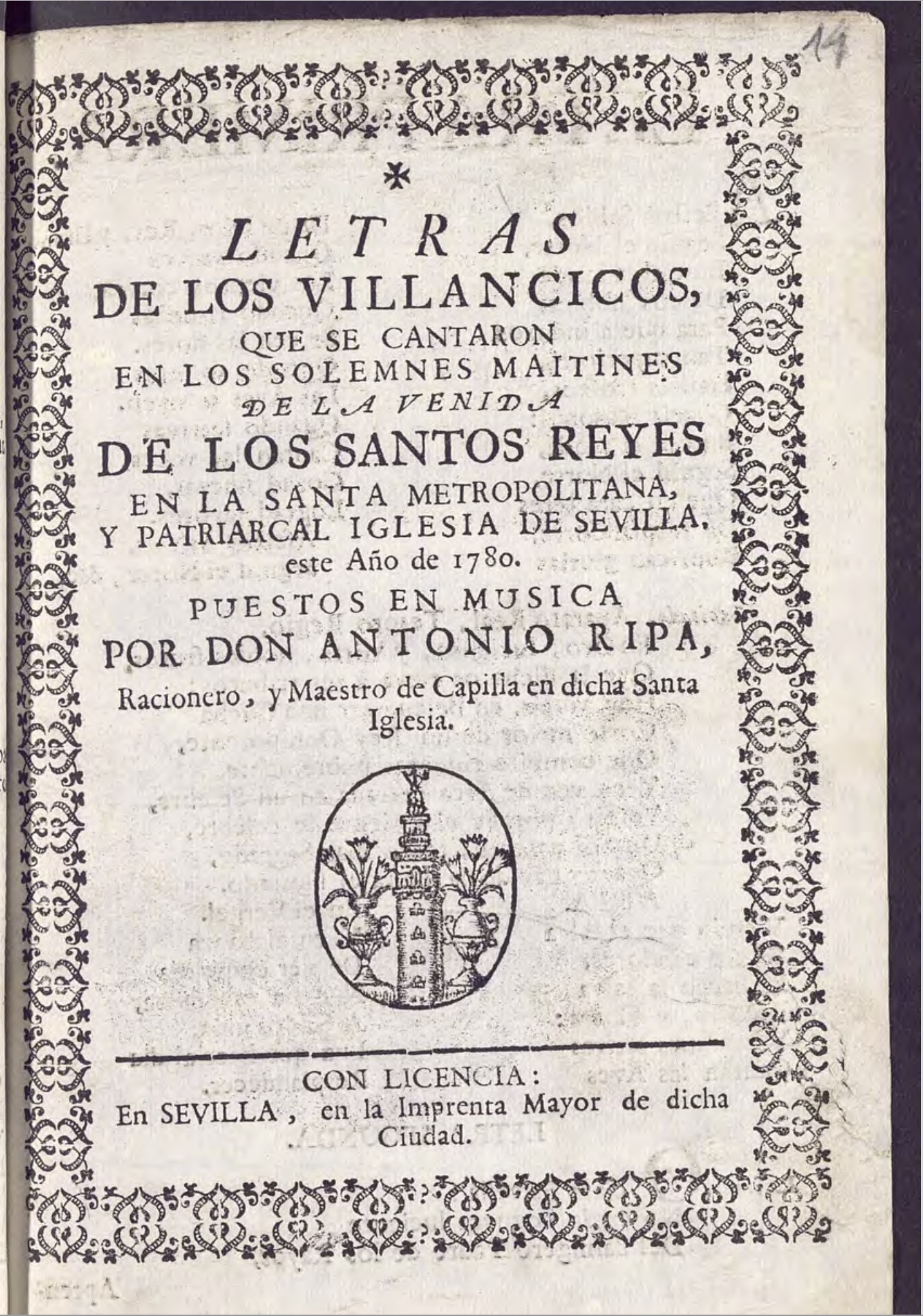 En la catedral de Sevilla, los Maitines de la festividad de los Reyes se solemnizaban con nueve villancicos compuestos para la ocasión. Este evento está dedicado a los que compuso el maestro de capilla de esa institución, Antonio Ripa, en 1780, de los cuales el tercero es “para los seises”.