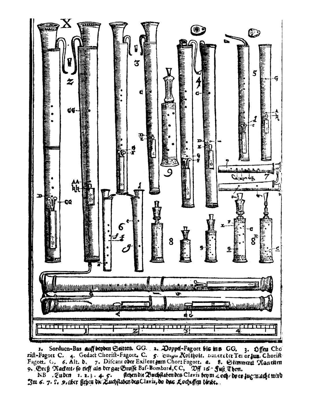 “Cinco tudeles, más un bajón grande guarnecido de plata y tudel de plata y cajeta, más un bajoncillo de tenor, más un bajoncillo de tiple, más una chirimía de tenor, más un bajón encorado [sic] y una chirimía de aser [sic], los quales me dio Pedro Sánchez por precio de cien reales de plata doble a pagar a vuelta de viaje y sino sus instrumentos... A [...] Juan de la Rosa dejo los instrumentos míos conven a saber un bajón guarnecido de plata con cajeta y tudel y una chirimía ordinaria y bajoncillo de tenor o la valía destos tales instrumentos”.