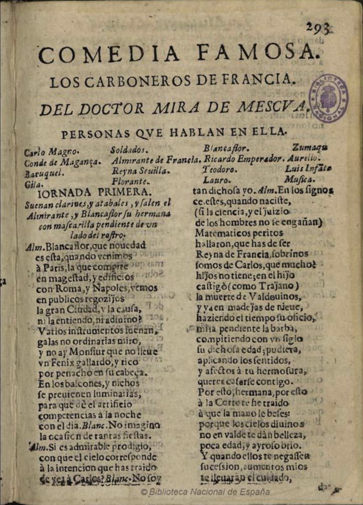 Martes 1 de mayo: “Comedia Los carboneros de Francia [Antonio Mira de Amezcua]. Entremes Los chulos mirlos. Sainete El Vejete enamorado”.
