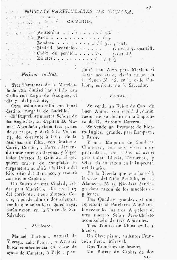 Venta de un piano de Francisco Pérez de Mirabal (1792)