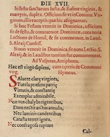 El 14 de julio de 1623, el cabildo de la catedral de Sevilla daba licencia a los cantores racioneros para que, sin hacer falta en el coro, acudieran al convento de las Vírgenes el día 17 de julio para cantar en la festividad de las Santas Justa y Rufina. Esta festividad era de primera dignidad en el arzobispado, el mayor rango de su calendario litúrgico. A instancias del arzobispo Rodrigo de Castro, el papa Pío V le concedió, como a otros santos hispalenses, rezo propio, cuyos textos se imprimieron en Sevilla, en 1590, según una referencia dada por Jonathan Brown. La edición más temprana de la que se ha conservado un ejemplar (Biblioteca del Monasterio del Escorial, sig. 112-II-56) es Officia propria sanctorum hispalensis ecclesiae (Salamanca: Guillermo Foquel, 1591). En 1607, se copiaba en el Libro de polifonía n.º 16 de la catedral [E-Sc 16] la versión polifónica que Alonso Lobo había compuesto del nuevo himno de esta festividad, Salvate clarae, cuyo texto había escrito el canónigo Francisco Pacheco.