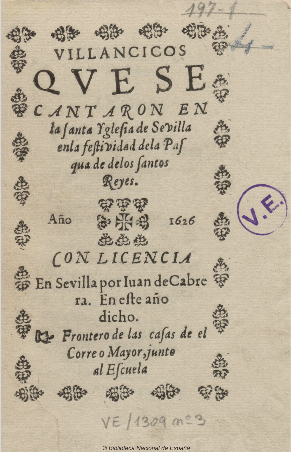 Villancicos que se cantaron en la santa yglesia de Sevilla en la festividad de la Pasqua de los Santos Reyes [Biblioteca Nacional de España, VE/1.309, nº 3]