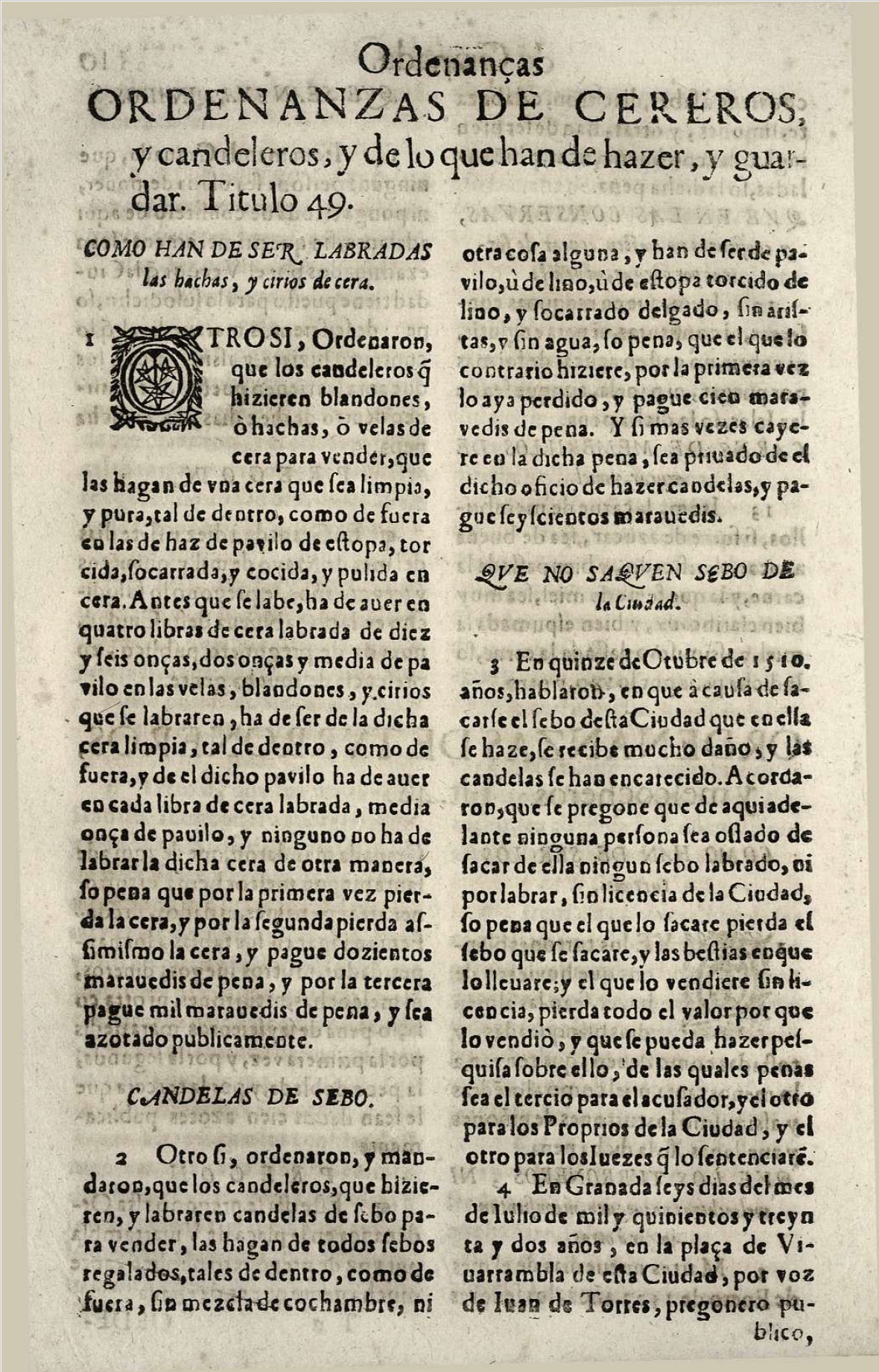 * El 13 de marzo de 1537, Martín de Páramo pregonó la ordenanza sobre pesos y precios de cirios y candelas en la plaza de Bibarrambla.