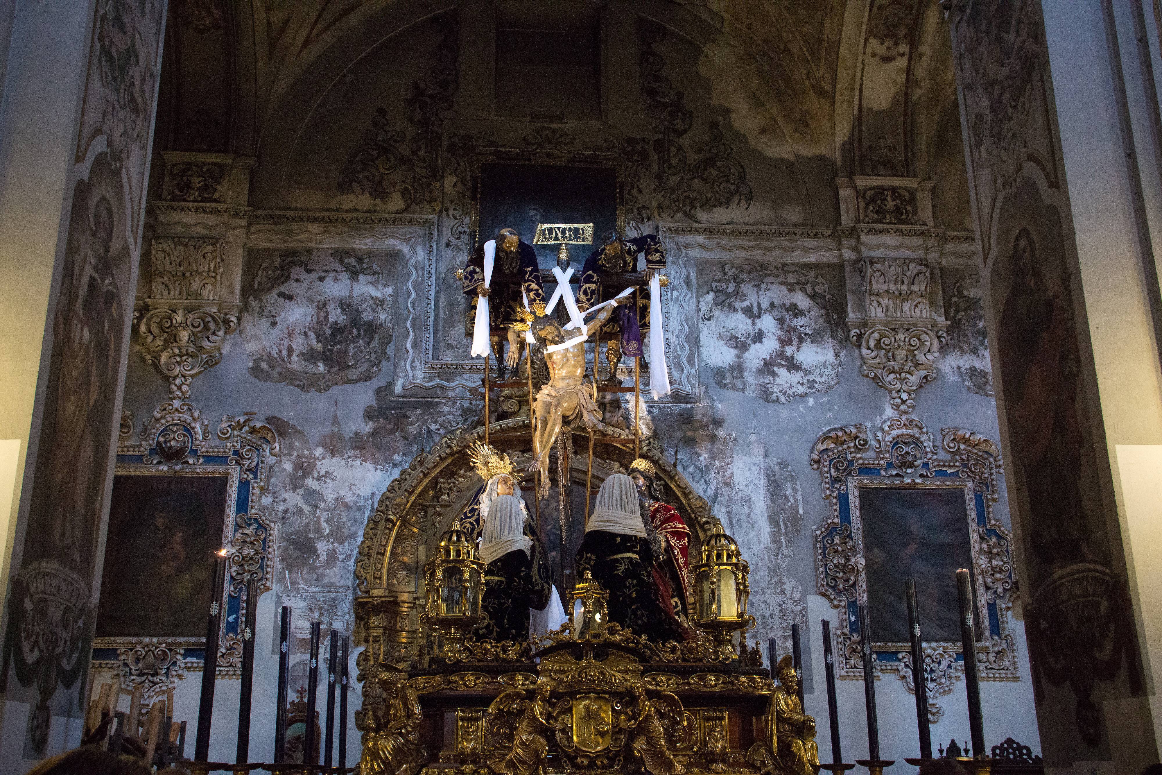 El 22 de abril de 1659, se concierta con el escultor Pedro Roldán la ejecución de once tarjetas con medio relieve para el paso de la Quinta Angustia. A este mismo escultor se atribuye la imagen del Cristo que mide 1,36 metros.