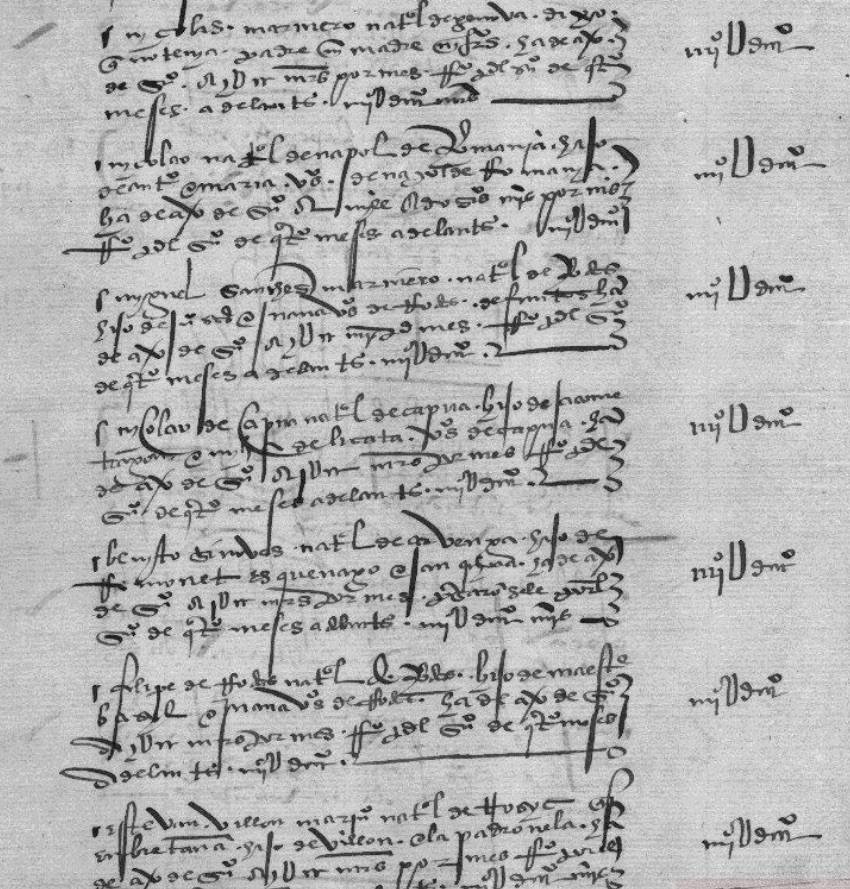 “Que los maestres de las dichas naos los tomaron e se los presentaron por ser suficientes cada uno en su cargo, y él los recibió como hizo a otros muchos extranjeros destos reinos, conviene a saber: venecianos y griegos, e bretones, e franceses, e alemanes, e ginoveses, porque al tiempo que los tomó no se fallaba gente para la dicha armada naturales destos reinos, habiendo fecho pregonar en Málaga y en Cádiz y en todo el condado, y en esta ciudad el sueldo que su alteza les manda dar...