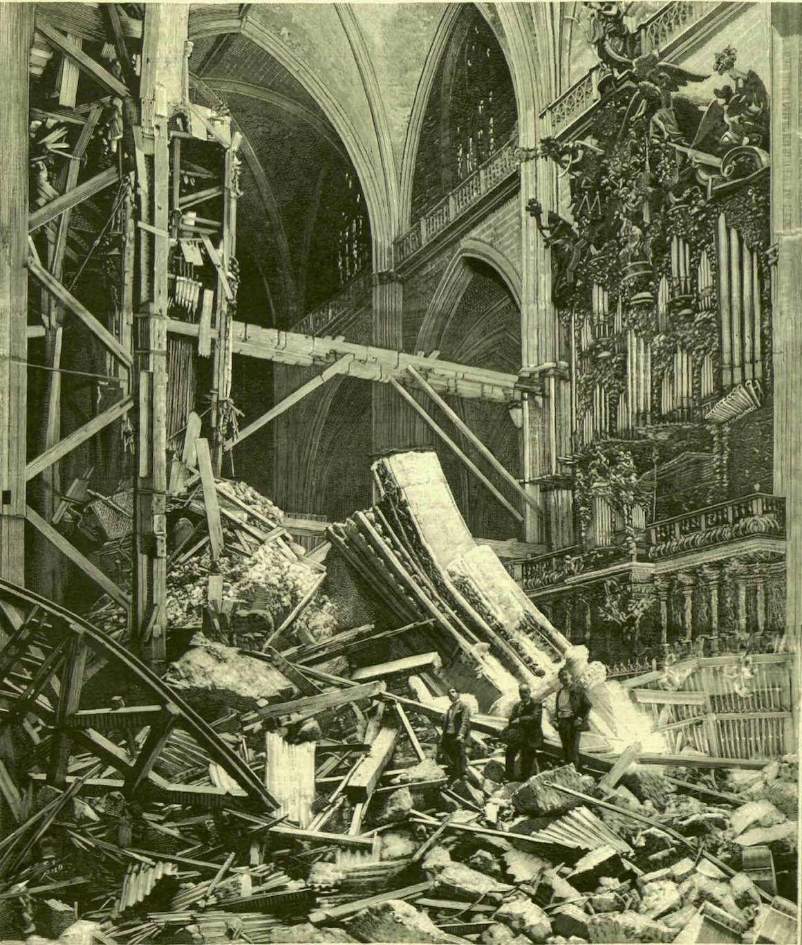 El desastre se repetiría muchos años después. El 1 de agosto de 1888, la rotura del pilar del ángulo sudoeste arrastró el cimborrio de Hontañón y arruinó el extraordinario órgano del lado de la Epístola construido por Jordi Bosch y el del lado del Evangelio obra de Valentín de Verdalonga.