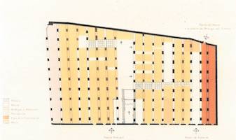 - Las atarazanas de los caballeros, con unos 10.500 metros cuadrados, usadas principalmente para el almacenamiento, situadas al otro lado del postigo del Carbón, donde posteriormente se construiría la casa de la Moneda y que englobaba a las torres de la Plata y del Oro.