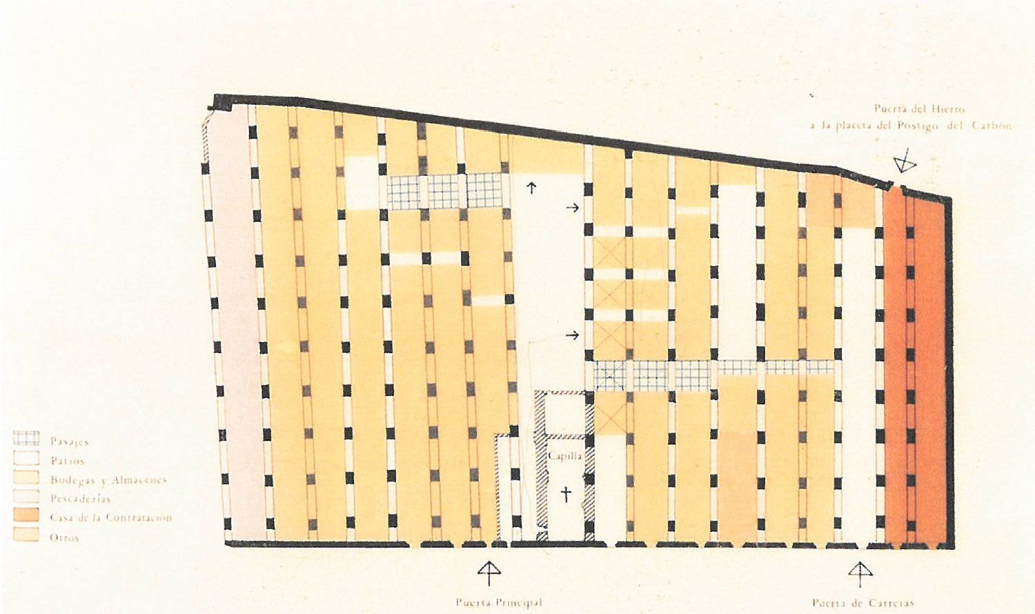 Al menos hasta finales del siglo XV albergó también una cárcel que contaba con un espacio especialmente lúgubre que los documentos llaman “el aljibe de la hambre”. En el siglo XVI, la pescadería mayor de la ciudad que se encontraba en la plaza de San Francisco se traslada a la nave nº 1 de las atarazanas. A mediados del siglo XVI, se derribará el rollo y la picota que se mantenían en el Arenal: “que para la justicia de los marineros y demás gente de las armadas había junto al muelle”.