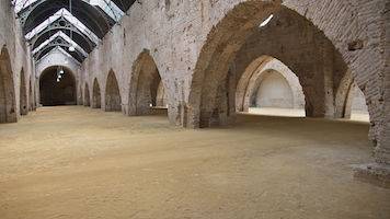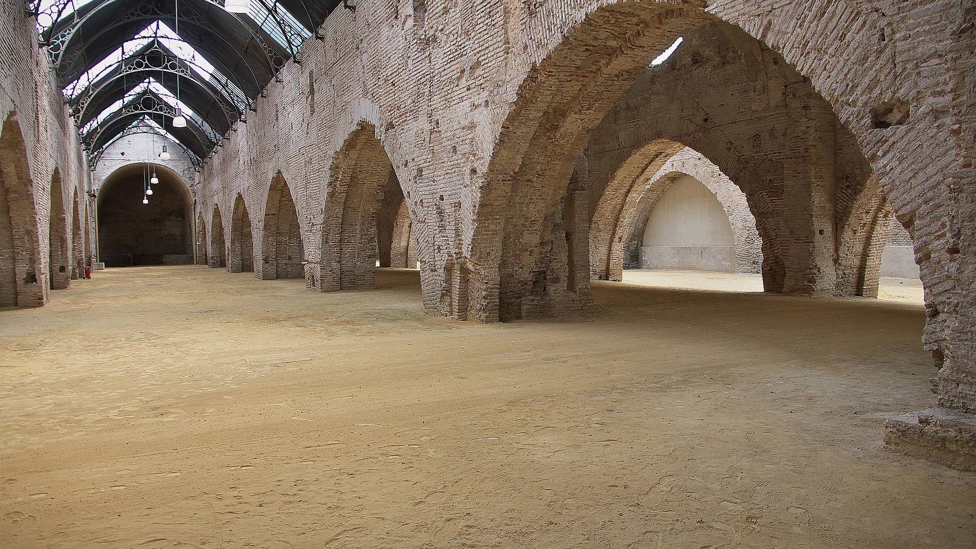 - Las atarazanas de las galeras que estaban compuestas por 17 naves perpendiculares al río Guadalquivir, adosadas a la muralla almohade y constituidas por una serie de grandes arcadas que soportaban la cubierta y que canalizaban el agua a modo de acueducto. En ellas podían guardarse más de 25 galeras de combate de unos 40 metros de eslora y que ocupaban una superficie de unos 18.000 metros cuadrados.