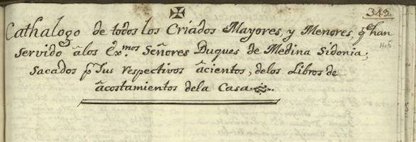 Patrimonio Nacional, Real Biblioteca, II/573. Cathálogo de todos los criados mayores y menores que han servido a los excelentísimos duques de Medina Sidonia, pp. 13, 15, 17, 50.